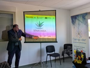 D. Salvador Marfil Urán, técnico del Ayuntamiento de Cartagena e integrante de la Delegación de Cuidad Sostenible y Proyectos Europeos, hizo una presentación del Proyecto ‘Spartaria’, del cual es coordinador, que cuenta con el apoyo de la Fundación Biodiversidad del Ministerio para la Transición Ecológica y el Reto Demográfico (MITECO) en el marco del Plan de Recuperación, Transformación y Resiliencia (PRTR), financiado por la Unión Europea – NextGenerationEU, el cual pretende luchar contra el abandono, desertización y creación de paisajes en el entorno rural, así como la puesta en valor de la tradición del esparto y sus usos industriales, las plantas aromáticas y sus usos, el turismo y el emprendimiento.